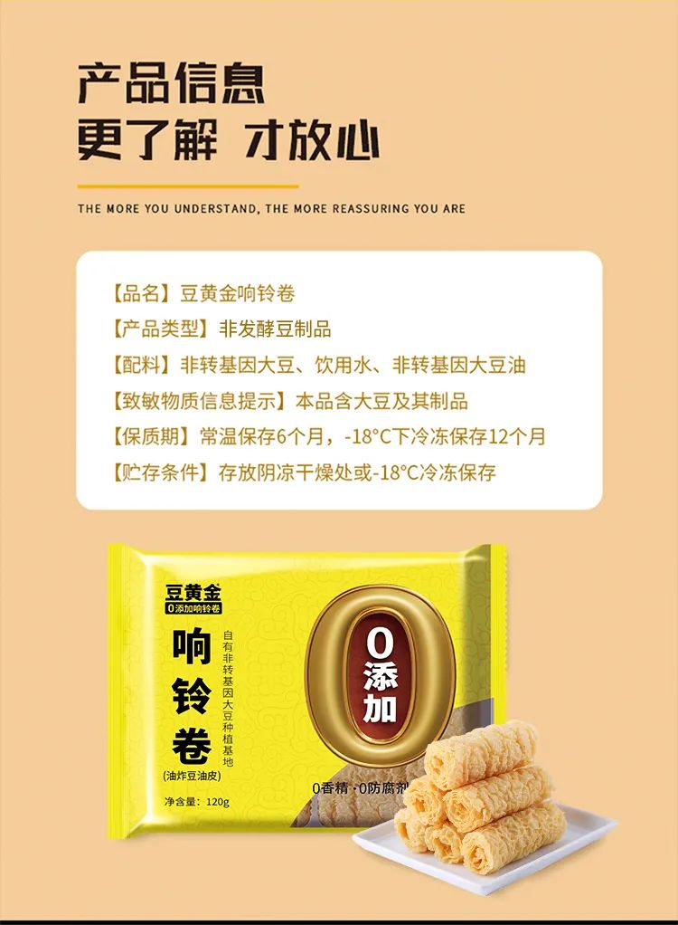 自2011年成立以来,豆黄金食品就从事非转基因大豆种植,同时不断探索与创新,将美食与现代健康理念相结合,其中“无添加”的天然腐竹系列产品属于国内新型研发,填补国内市场空白(资料来源:百度百科)为广大用户们提供高品质的食品。