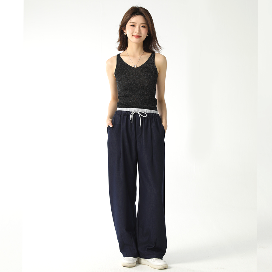 采用宽松垂感设计,搭配阔腿版型,不仅遮肉显瘦,还能拉长腿部线条,轻松穿出大长腿的效果。高腰设计更是点睛之笔,能很好地修饰身材比例,让你秒变“小腰精”。