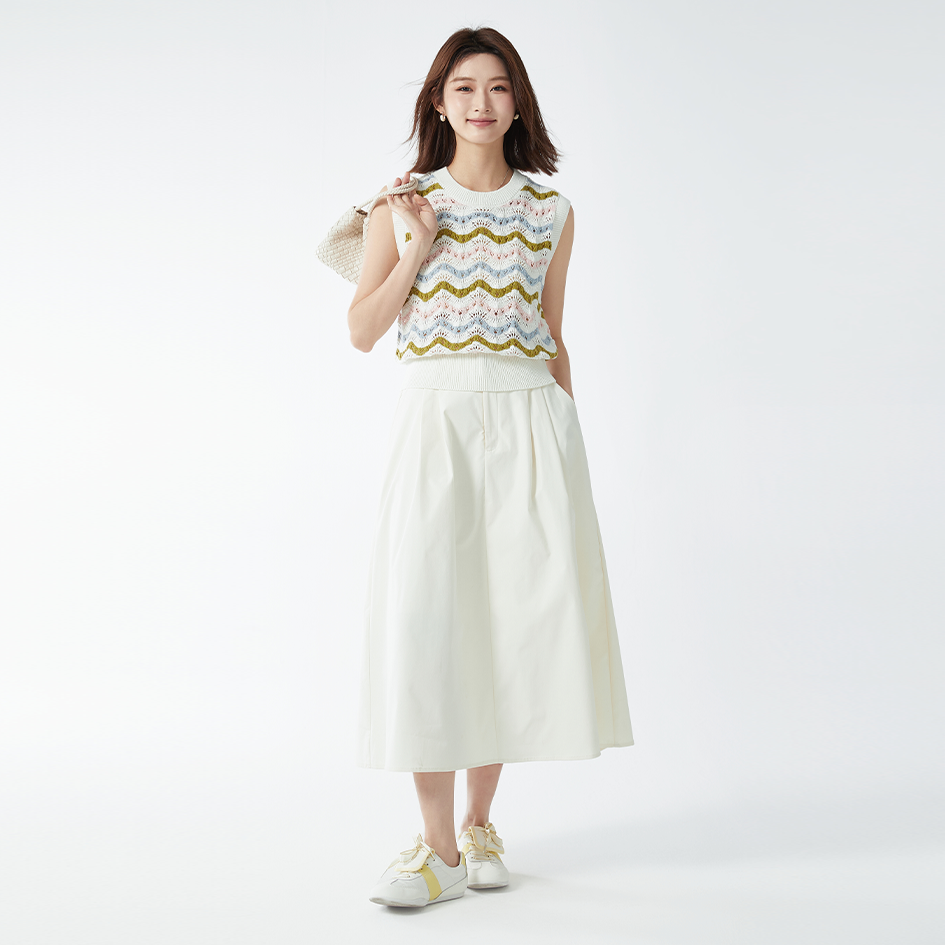 它的极简风设计,简约而不简单。高腰版型拉长腿部线条,A字裙摆遮胯显瘦,中长款长度刚刚好,无论是通勤、约会还是聚会,都能适配,展现出温柔又优雅的气质。